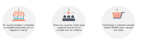 La plataforma propuesta como solución a los desajustes y dificultades en el mercado de las redes sociales por NODIS tiene como objetivo resolver los puntos problemáticos del mercadeo en las redes sociales a través del «programa Challenge». En la plataforma propuesta por el equipo fundador, las empresas pueden publicar un desafío en la plataforma para que las personas participen. Puede ser algo como «tomar un selfie frente a una tienda y publicarlo en las redes sociales». Una vez que se envía la prueba solicitada para revisión, los usuarios de la plataforma pueden votar si cumple con los criterios del desafío.