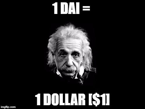 Buena captura. El activo con el que Dai está tratando de mantenerse estable es el dólar estadounidense. Entonces, para resumir, un Dai equivale a un dólar. Dai está configurado para ser el primer establo de grado de consumo que funcione.